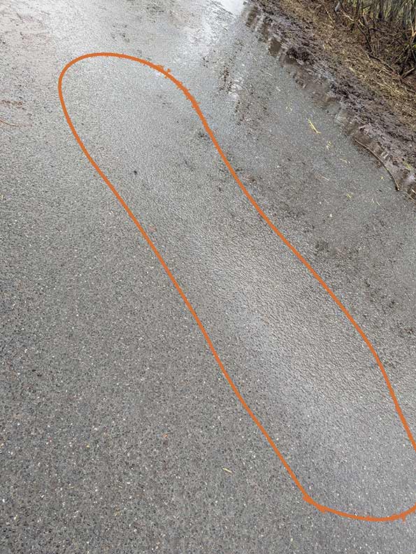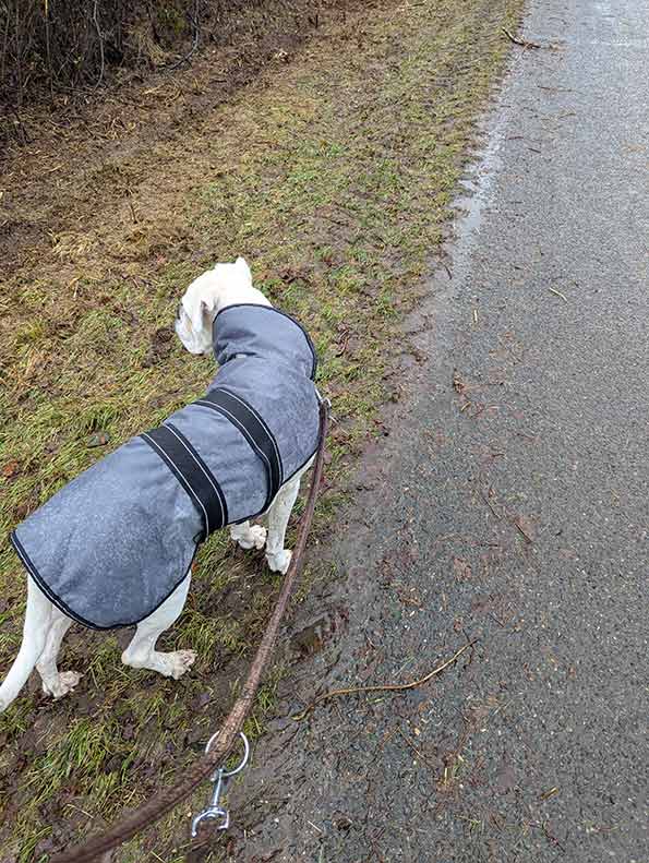 4. … hat ein Wagen auf unserer Tour eine richtig große Ladung Benzin verloren. Die Spur zog sich über fast fünfzig Meter und wurde dank des Regens einmal ganz über die Straße von links nach rechts in die Regenablaufrinne gespült. Dummerweise fiel es mir erst auf, nachdem wir mittendrin standen. Also hab ich Doggoline gleiche von der Haustür aus ins Bad geschoben und ihr in der Dusche die Pfoten. gewaschen. Es ist übrigens kein Vergnügen einen Hund zu waschen, der nicht gewaschen werden will. 😆 War ich hinterher nass? Klar. Das ganze Bad auch. War ich hinterher erledigt? Und wie!😅