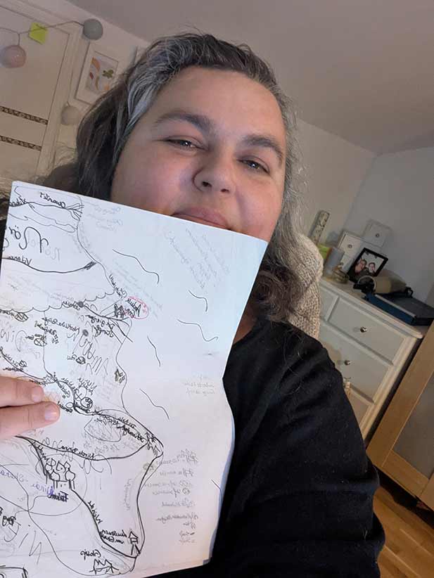 20:22 Uhr: Meinen Mann hab ich geschafft, er liegt gerade geplättet auf dem Bett. Warum? Ich habe Sonntag zum wiederholten Male meinen Schreibtisch nach meiner Fantasy-Welt-Landkarte durchsucht. Ich habe sie in den vergangenen anderthalb Jahren immer wieder gesucht – immer dann, wenn ich eine neue Geschichte in diese Welt geschrieben habe oder eine Geschichte aus dieser Welt überarbeitet habe. Wie mich das gewurmt hat! Weil ich wusste, dass ich sie niemals weggeworfen hätte – denn es gibt ja nur diese Eine!