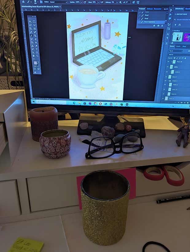 - 9:30 Uhr: Teezeit für die letzten ca. vierhundert Wörter für heute. Es folgen jetzt ein paar romantische, vorher hatten wir es düster bis abenteuerlich. Ich freue mich drauf!