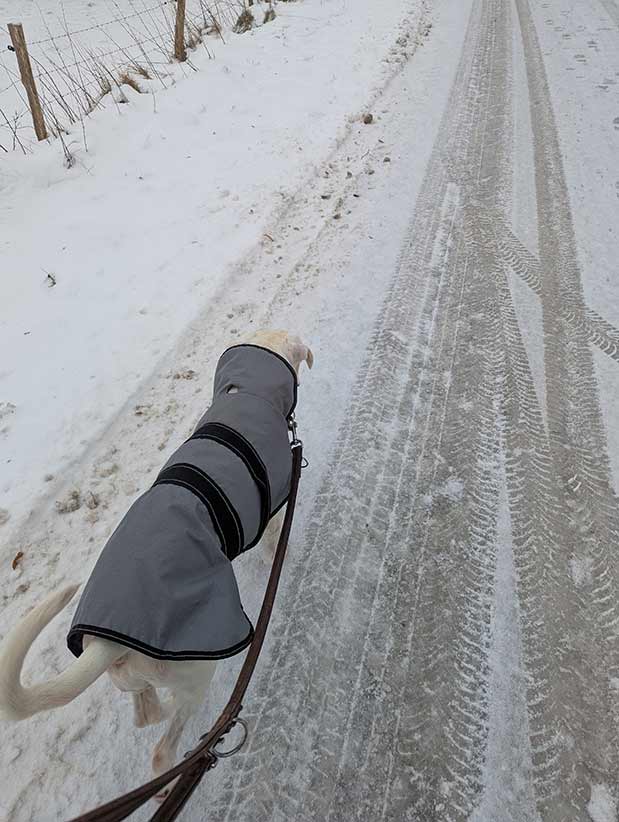 - 11:45 Uhr: Zeit für ein wenig Bewegung. Nur ich, die Fellnase und das tauende, knirschende Eis auf der Straße unter meinen Füßen. Das ist mal abenteuerlich! Wer braucht da noch Skier oder Geisterbahnen?