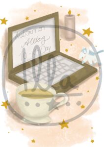 Die Tee- bzw. Kaffeebecher sind in meinen Illus oft Bestandteile eines Arbeitsplatzes. Als ich anfing meine Illustrationen für den Blog zu malen, hatte ich nicht damit gerechnet, aber ich schreibe nun doch viele Artikel über das Bloggen und die Arbeit an meinen Werken. Dadurch brauche ich nun öfter Arbeitsplatz-Bilder.